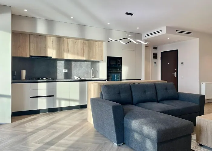 Apartamentul include o bucătărie utilată unde oaspeții pot găti și se pot bucura de mesele făcute în casă. Apartamentul de 51 m² se află la 29 de minute cu mașina de aeroportul internațional Henri Coandă din București. Există o terasă ca loc de relaxare.